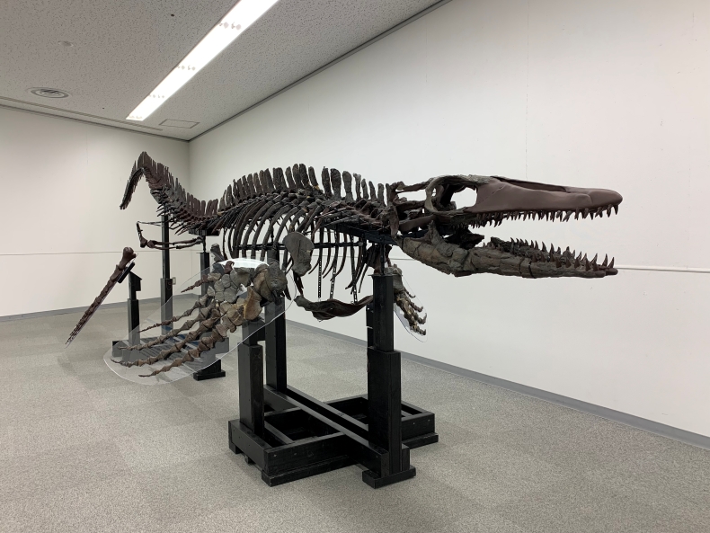 (内容)ワカヤマソウリュウ実物大骨格レプリカ標本(約6m)、生体模型(約1.2m)の展示